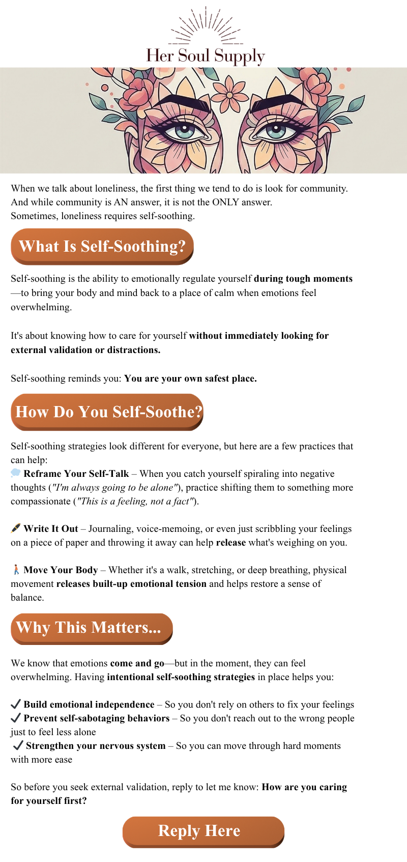 The owner wanted to expand her impact by helping women create clear strategies for breaking up, so she launched Her Soul Supply. While she had strong workshops, retreats, and lead magnets, she needed cohesive email campaigns to communicate her message and guide women toward her offerings.